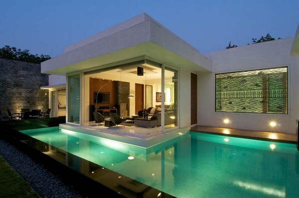 O atelier Atelier dnD imaginou esta casa em Baroda, Indía. O conceito está orientado para construir uma casa minimalista, com linhas limpas, simples de geometria organizada, fluida, espaços transparentes em que os interiores e exteriores misturam-se em si, numa tentativa de manter o utente constantemente em contacto com o ar livre.