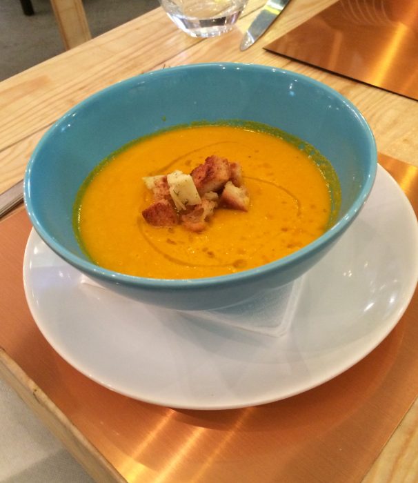 Almoçei verdadeiras delícias num espaço que promete; desde a sopa de cenoura, uma deliciosa salada de frango César e terminando com uma verdadeira bomba de chocolate (ver as fotos).
