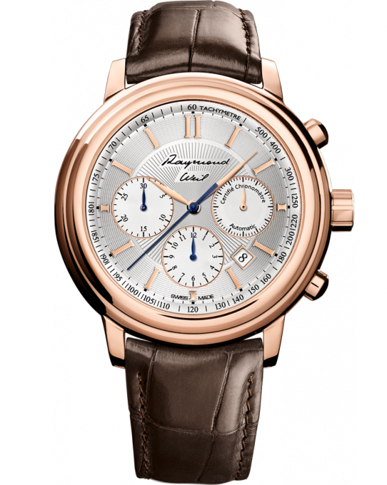 Um relógio em homenagem a um trabalho de vida é o testamento silencioso da empresa ao seu fundador. Uma referência util à complexidade favorita da Raymond Weil, um coração mecânico automático equipado com uma reserva de corda de 42 horas integra e dá vida a este cronógrafo com certificado COSC. Cada relógio é gravado com um número exclusivo no seu movimento e é fornecido com um certificado emitido pela organização oficial do COSC. A caixa de 45 mm em ouro rosa de 18kt abriga um mostrador que ostenta a assinatura manuscrita de Raymond Weil. Os botões do cronógrafo estão dispostos nos dois lados da coroa e permitem iniciar, parar, reiniciar e retornar a zero o cronógrafo.