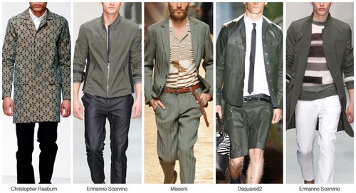 Deste modo, tons de verde oliva têm sempre um lugar nas colecções sazonais.  A aparência descontraída está mais em consonância com ajustes relaxados da temporada e materiais técnicos.
