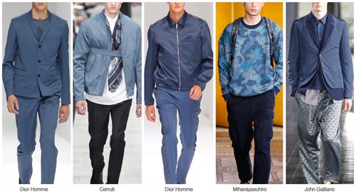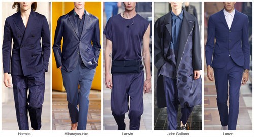Os tons de azul marinho e índigo tornaram-se a opção must-have para todas as colecções e os mercados. Os tons quase negros da SS 2014  o  FW 2014/15  iluminaram-se um pouco para este verão, mas ainda mantendo um ponto saturado.