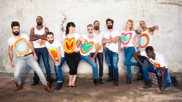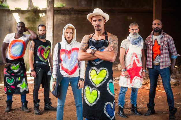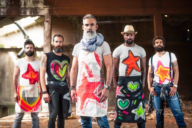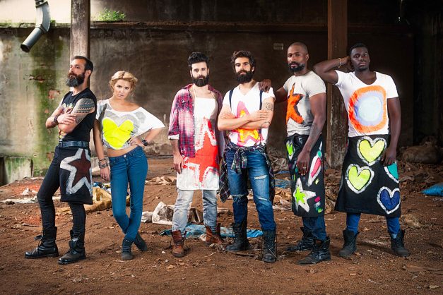 As minhas peças são mostradas e valorizadas nos seus detalhes e na plenitude das suas cores, em contraste com uma envolvente dura e industrial. Quisemos ter barbas farfalhudas, tattoo e bigodes, acessórios. Quisemos misturar urbanidade com alegria, não perdendo nunca a simplicidade que me caracteriza.