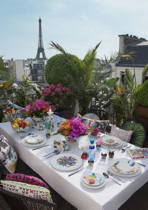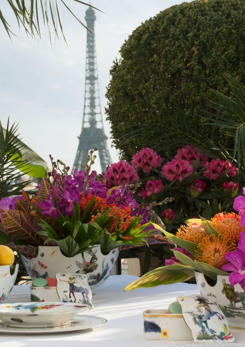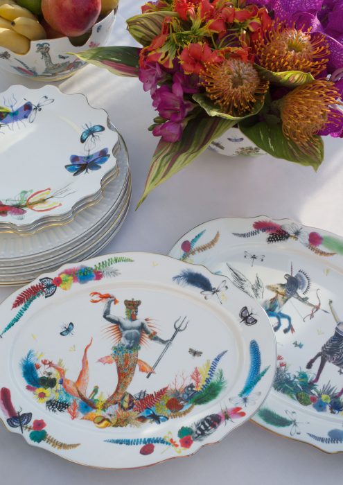 Para esta nova colecção de porcelana desenvolvida pela Vista Alegre, a Christian Lacroix imaginou uma decoração de exuberância tropical.