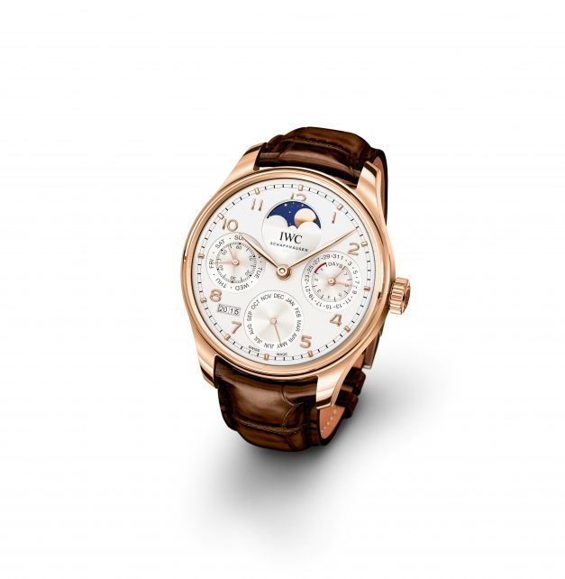 Nos renovados modelos Portugieser Calendário Perpétuo com Lua dupla e Portugieser Calendário Perpétuo com Lua única, a indicação das fases da Lua constitui não só o centro visual no mostrador, mas é também o destaque técnico de um relógio topo de gama, rico em obras-primas relojoeiras.