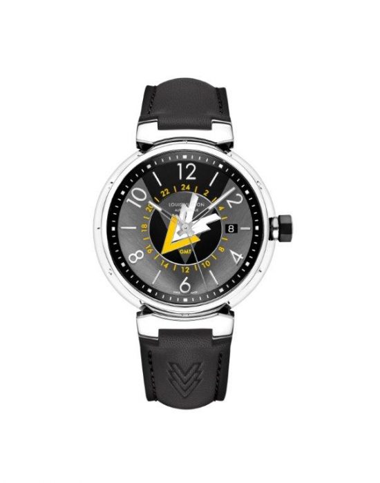 Esta assinatura foi usada várias vezes por Kim Jones, director artístico das colecções masculinas da Louis Vuitton, nos seus mais recentes desfiles. Agora, o triplo V surge pela primeira vez no mostrado de um relógio e sob a forma de ponteiro em metal amarelo lacado.