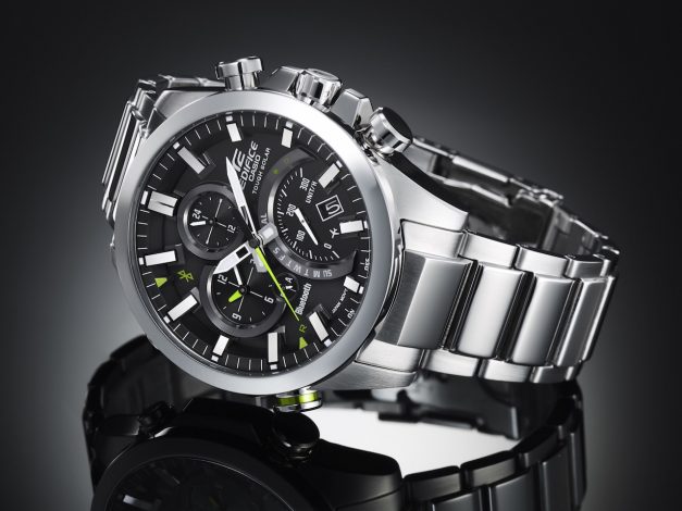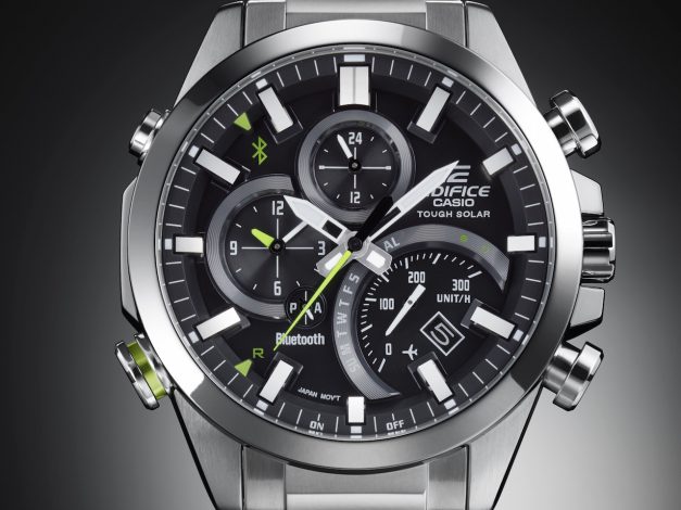 Agora a Casio está a lançar a nova gama Smartphone Link EQB-500 dos relógios EDIFICE que apresentam todos os benefícios de um relógio de pulso de qualidade incluindo um movimento alimentado por energia solar, resistência à água e design refinado que apenas um relógio de metal pode oferecer, enquanto oferece também conectividade a um smartphone. Isto melhora em grande medida a velocidade e acessibilidade à informação sobre a hora mundial uma vez que os utilizadores tinham antes que calcular e manualmente definir a hora para os fusos horários das diferentes cidades.