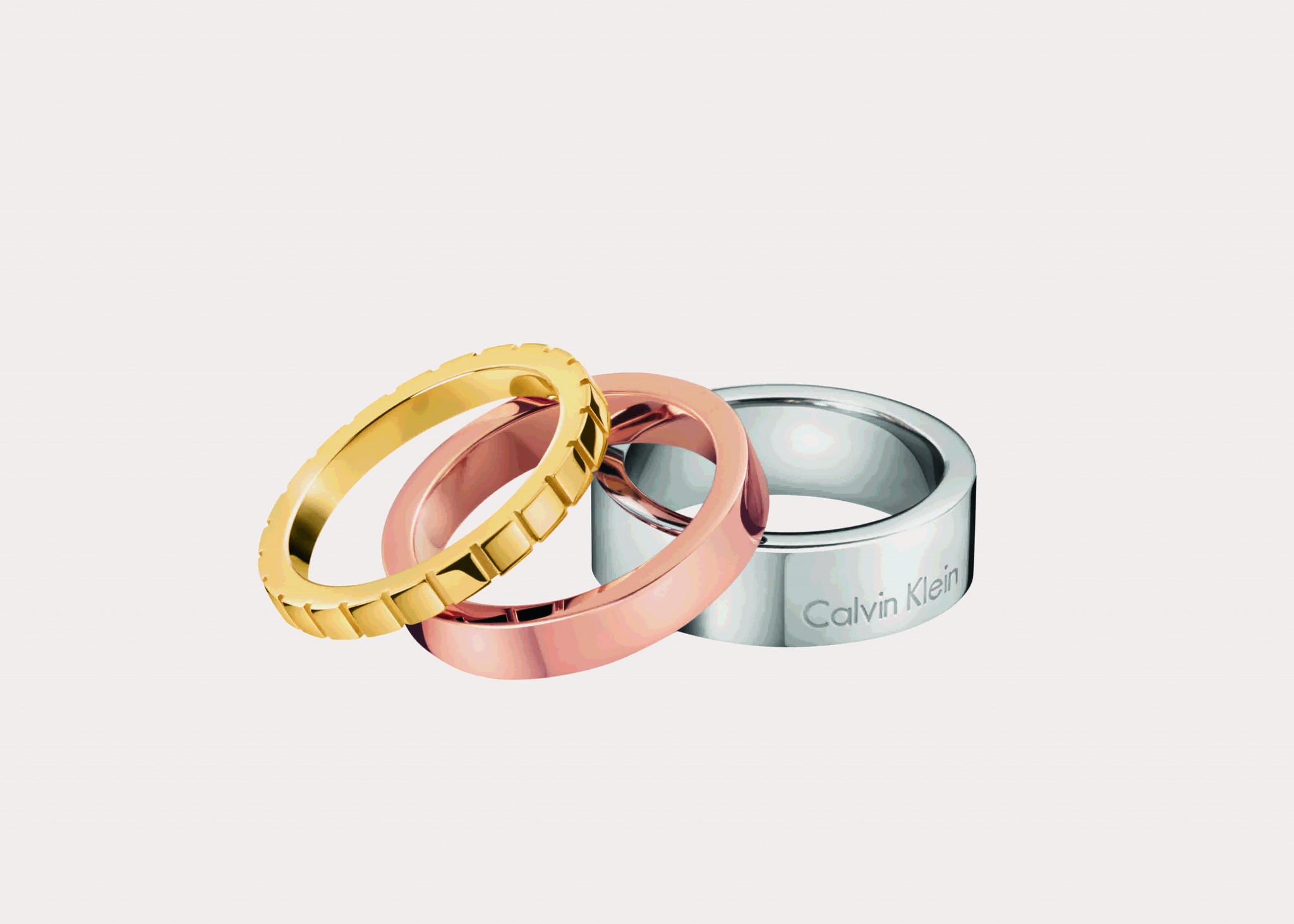 Num ano de especial simbolismo, que assinala em 2015 o seu décimo aniversário, a Calvin Klein joalharia vinca a sua ligação com as mulheres portuguesas e disponibiliza um conjunto de três anéis, em aço inoxidável polido, em PVD dourado rosa e em PVD dourado.