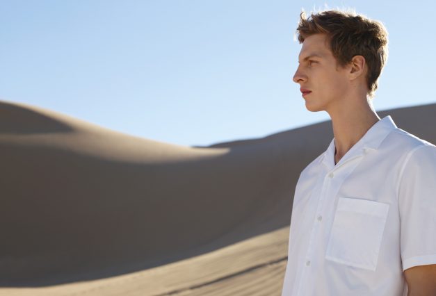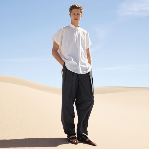 Fotografada por Karim Sadli e com styling de Jonathan Kaye, o pano de fundo minimalista realça as silhuetas descontraídas da coleção. Ventos do deserto e interações de luzes quentes ajudam a criar um sentido de liberdade e movimento, enquanto iluminam subtilmente os detalhes.