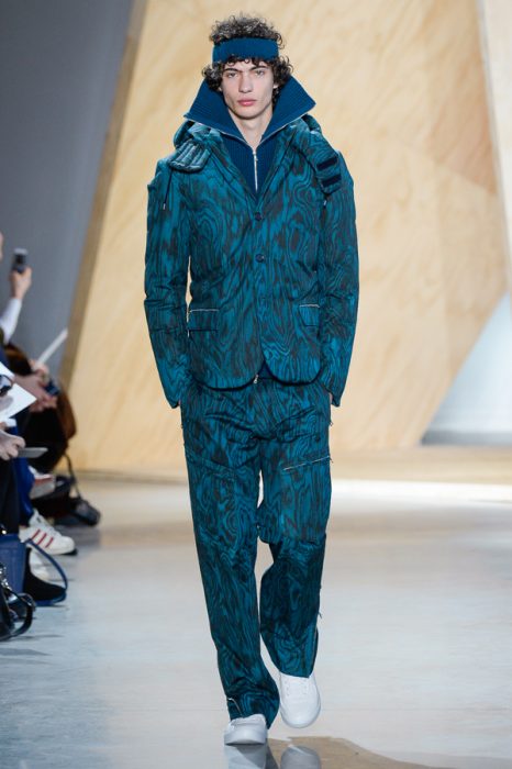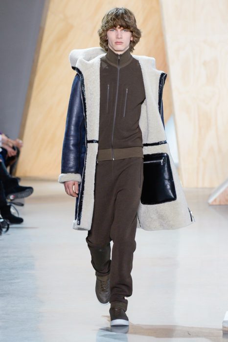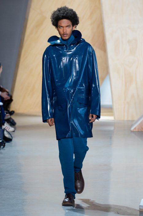 A mistura de materiais é explosiva e revigorante, à imagem dos emblemas de vinil em casacos de pêlo de carneiro. O brilho do veludo e do nylon destacam a rusticidade do feltro de lã virgem.