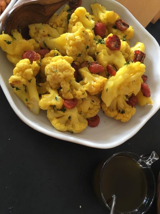 – Hambúrguer de salmão com couve-flor e açafrão;