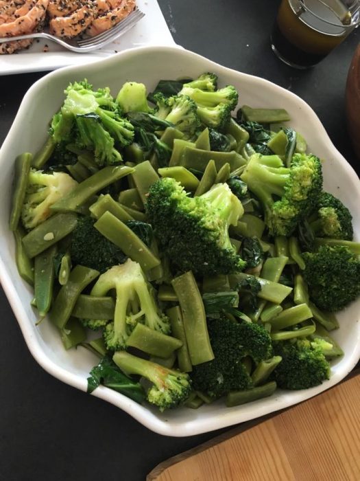 – Linguini preto com camarão, abacate e pimentos salteados;