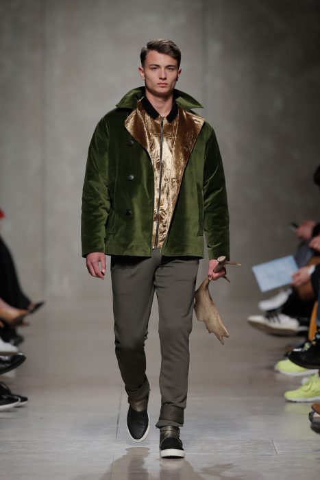 Nesta edição dos 25 anos da ModaLisboa, muitos foram os motivos de alegria para a menswear e seus apreciadores; começamos com o sangue novo onde muitos dos seus participantes apostaram na concepção e design de roupa masculina. Destacamos a colecção de Patrick de Pádua com silhuetas muito marcadas num contexto militar já conhecido no seu estilo. Peças práticas apostando na palete militar, seja o kaki como todos os verdes. Devemos destacar um coordenado de David Catalan que nos chamou a atenção como podem ver na galeria em cima.