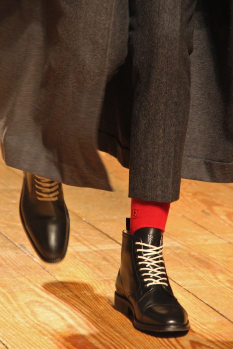 As calças continuam acima do tornozelo, com ou sem dobra. Cores mais sóbrias e um público masculino mais abrangente. Tonalidades secas e silhuetas mais formais. A sobreposição é o grande desafio, com muitas possibilidades de conjugação de texturas, padrões e estilos.