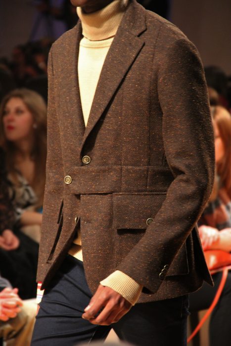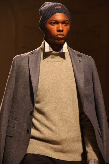 Foram várias as propostas apresentadas, desde os casacos single breasted de dois botões, os tweeds, riscas lisas, xadrez, camisolas de gola alta e muito mais. As camisolas de gola alta voltam ao vestuário masculino, mas desta vez com uma maneira mais divertida de se usar. Camisa por dentro e com as golas a querer sair da camisola, uma ideia muito divertida e uma alternativa funcional para o seu look.