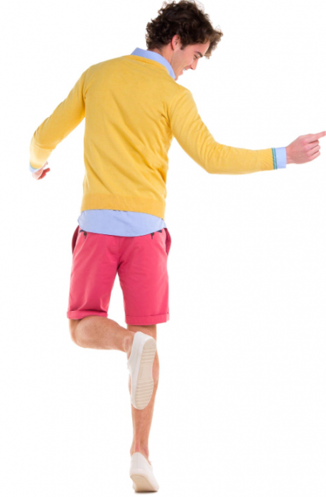 O amarelo aparece pouco na indumentária masculina mas podemos arrojar neste verão com ele. Para-ventos como vemos na imagem ou pólos ajudam a dar cor ao nosso verão.