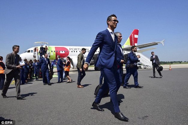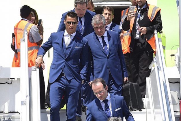 O fato, personalizado à medida de cada jogador, possui elementos distintivos no exterior e no seu interior, com símbolos que representam o desafio, a força, a vontade de vencer de um povo que na sua historia, sempre soube levar a sua bandeira pelo mundo. O emblema da Federação Portuguesa de Futebol não poderia deixar de estar presente, agora bordado no bolso de peito, coordenado com outros elementos exteriores como a gravata, num cinza prata escuro que lhe da um toque de requinte e elegância.