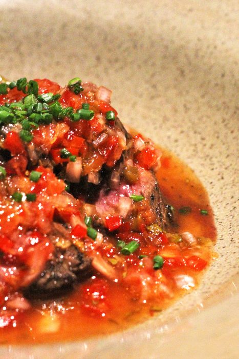 O restaurante reforçou o conceito de partilha e introduziu mais entradas para este efeito: destaque para o Olive Sanuki Wagyu com shitake salteado (proveniente de animais alimentados exclusivamente a azeitonas); o Pica-Pau do Lombo com “Salsa de la Vida” (um molho agridoce) e a Salada de Tutano com tubérculos e pão tostado.