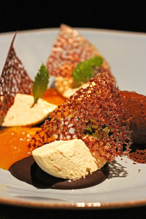 A criatividade prolonga-se pelas sobremesas com um Parfait de Vinho do Porto e Mousse de Chocolate e o novíssimo Pudim de Cenoura com Sorbet de maçã verde, mousse de queijo e canela.