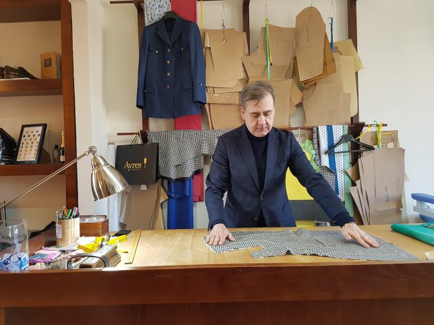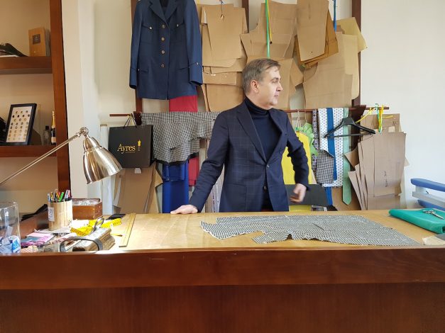 A moda masculina não pode negar a sua faceta de alfaiataria que abarca a faceta de “feito à medida”. Por isso, era imprescindível visitar e conhecer melhor o trabalho excepcional deste mestre. Começando nestas lides pela orientação do avó, já que nascido numa família de alfaiates, depois de várias experiências fora de Portugal, passa em 2006 por Saville Row. Nesse centro da elegância masculina, entra com contacto com vários mestres da área,