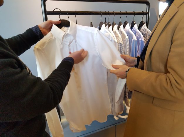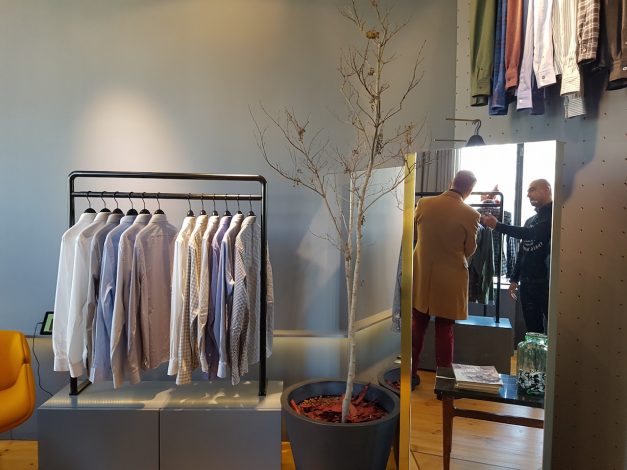 Fomos, de seguida, visitar um espaço perto do atelier de Ayres Gonçalo, na Praça D. Filipa de Lencastre, onde os homens podem encontrar camisas customizadas.
