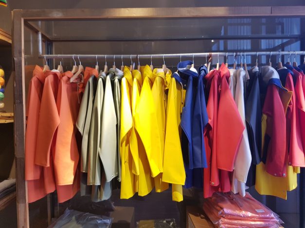 Nesta loja podemos encontrar a marca portuguesa Caiagua, gabardinas coloridas e cheias de vida para um tempo cinzento.