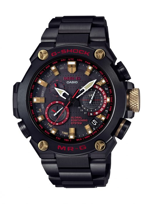 A Casio acaba de lançar um novo modelo G-SHOCK MR-G. O novo MRG-G1000B-1A4 apresenta o sistema “GPS Hybrid Wave Ceptor* timekeeping” e detalhes em vermelho que evocam as armaduras vermelhas que eram utilizadas pelos samurais de elite. A série MR-G oferece as mais recentes novidades no design de relógios resistentes ao choque.