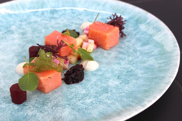 - atum vermelho com lima, batata doce e preta zeta