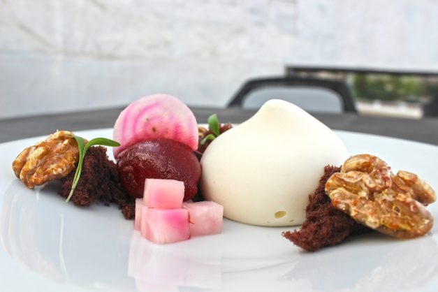 - queijo de cabra com beterraba, chocolate negro e nozes