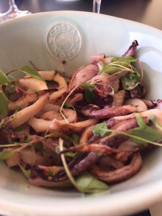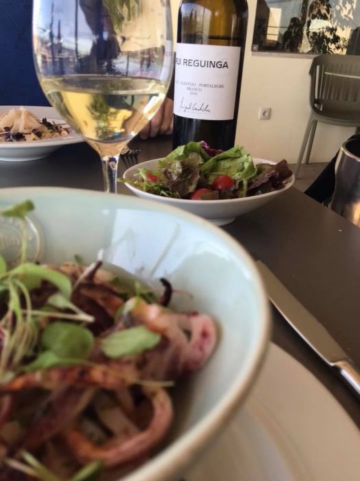 As nossas escolhas ontem ao visitar o local passaram pela Tábua de presunto, pancetta e figo confitado, risotto de bacalhau e lulas grelhadas terminando com uma marquise de chocolate e um tiramisu. Regado tudo com um branco de Rui Reguinga para o chefe. Sempre com um serviço atencioso