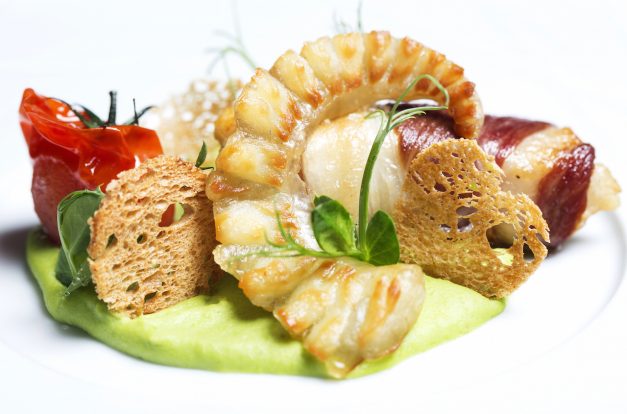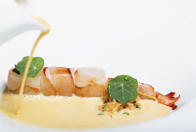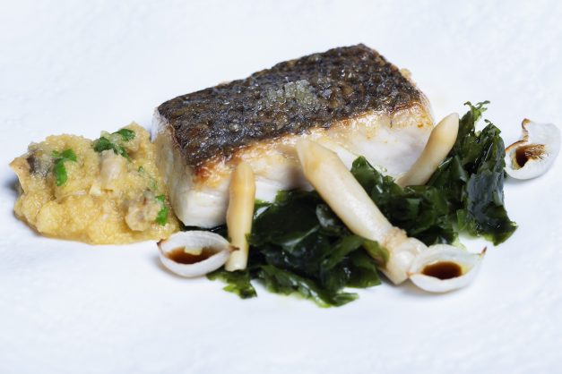 Nas Sopas e Cremes, o Creme de Marisco com sapateira, camarão e ovas junta-se ao Creme de cogumelos, com cogumelos recheados com salsa. Sobre a primazia do cogumelo, João Correia também tem algo a dizer. “Quisemos pensá-lo de uma forma diferente, como elemento de destaque”, o que acontece não só nesta sopa como em alguns pratos que veremos mais à frente. “Além disso, trabalhamos com cogumelos de produção totalmente biológica que têm tudo para brilhar”, esclarece o chef.
