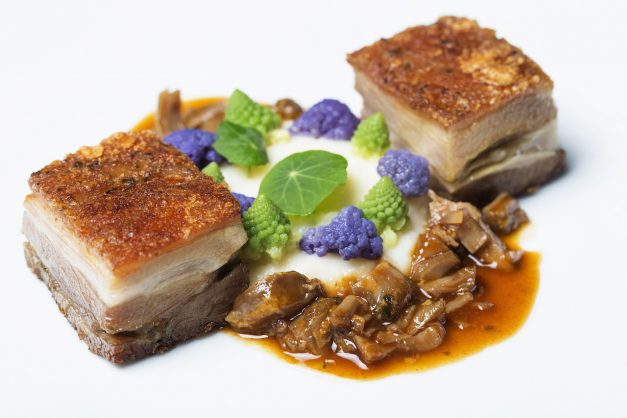Nas novas entradas há ainda Rosbife, rúcula, cornichons, salsa frita e vinagrete de mostarda e Pêra bêbeda com queijo de Azeitão no interior e porco preto, acompanhado por uma salada de acelgas e avelãs.