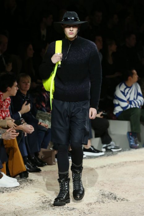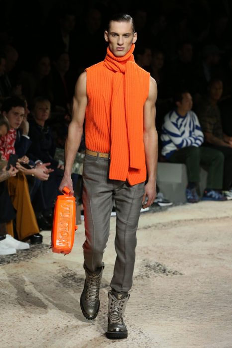 Por sua vez o calçado ecoa todos estes híbridos: desde botas cowboy com detalhes técnicos de escalada, a luxuosa pele píton utilizada em sapatilhas para desportos de alto-impacto – um “reboot” de um modelo que apareceu em 2015.