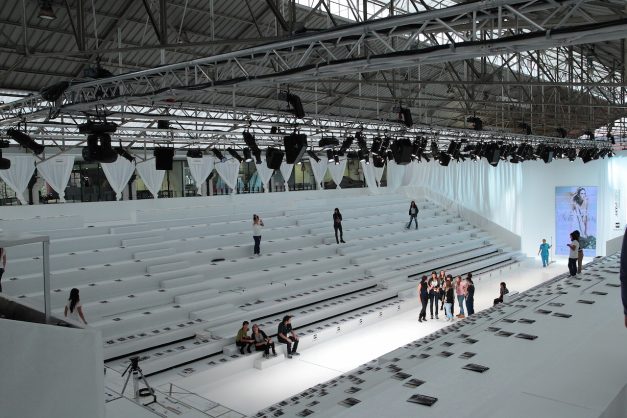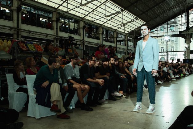 “Foi um trabalho de Hércules, quando todas as pessoas diziam que era impossível tanto no planeamento de toda a disposição como os desfiles do LAB no meio das bancas em funcionamento. Uma edição incrível pela sua cenografia, uma sala invertida entrávamos a descer. Envolveu todo mercado, bancas de flores, refeições com a carne do talho etc tudo o que foi utilizado vinha do mercado. As bancas das frutas e legumes eram o local de desfile. Como sempre tentamos envolver a comunidade envolvente a qualquer edição da modalisboa, aconteceu de modo extraordinário nesta edição. Os convites eram feitas a partir de fotos feitas pelo Ricardo Mealha e eu no mercado, até a própria imagem institucional”