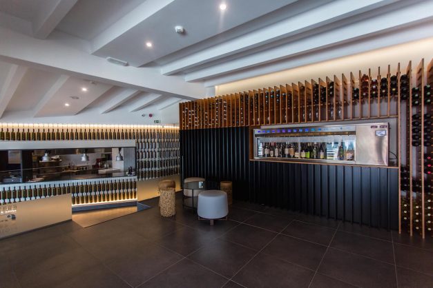 Nos vinhos aposta-se na diversidade geográfica e em rótulos menos conhecidos a par dos conceituados. Os dispensadores By Glass oferecem 48 opções de vinhos a copo a que se juntam mais duas dezenas de opções de vinhos de topo (com recurso ao sistema Coravin em que não se retira a rolha e prolonga a longevidade do vinho em garrafa), em três medidas: a primeira é uma amostra para prova (gratuita), meio copo e copo, com indicação das castas e do respectivo preço. Desta forma, o cliente pode aventurar-se em vinhos que não arriscaria e fazer a harmonização certa com cada prato (há sugestões na carta). Para que a experiência seja mais completa, o cliente adquire um cartão e estabelece um plafond que vai gastando. O valor excedente pode ficar no cartão para uma próxima visita ou reavê-lo no final da refeição.
