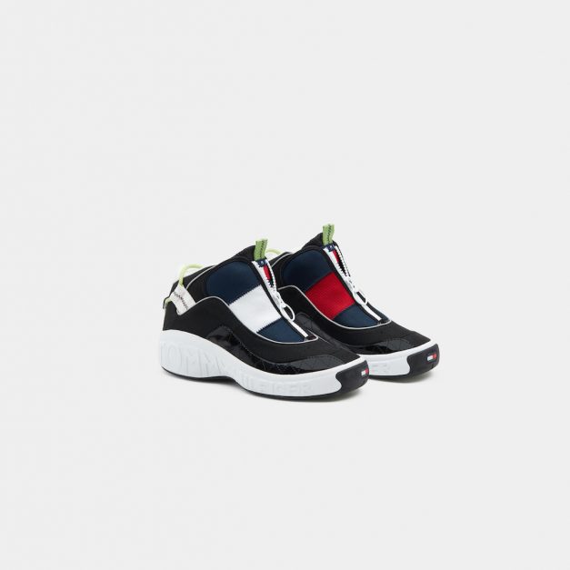 Os ténis em vermelho, branco e azul apresentam um fecho central, os atacadores escondidos e TOMMY JEANS com revelo na entressola. O icónico logotipo em destaque na parte superior, a zona do calcanhar com detalhes e as solas verdes brilhantes fazem destes ténis a peça estrela desta coleção cápsula. Este modelo icónico regressa perfeito para os apreciadores de relíquias e para a próxima geração de fãs do TOMMY HILFIGER.