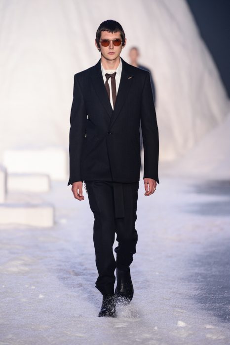 Mas quando chega o Inverno? daqui a pouco? As instalações cruas da Università Bocconi foram invadidas pela neve na qual modelos deixavam pegadas e escreviam caminhos à medida que desfilavam. Este é o cenário envolvente que define a SNOW, uma coleção de fotografias de paisagens gélidas, criado pelo artista Thomas Flechtner, que tem estado ativamente envolvido na criação do espaço do desfile, que transparece uma envolvência tridimensional da eterna dicotomia Homem vs Natureza.