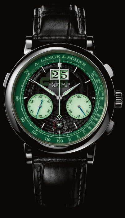 Luz para ler o tempo em todo o lugar. O novo modelo da A. Lange & Söhne permite a leitura do tempo ao longo de 24 horas e a sua função cronográfica também pode ser usada em qualquer altura. Porque todos os seus dados são perfeitamente legíveis até na escuridão, graças a um mostrador semitransparente e indicações luminescentes. Tão luminoso cronógrafo – com função de retorno instantâneo (flyback), totalizador dos minutos de salto instantâneo e indicação da reserva de corda – surge declinado numa edição especial limitada a somente 200 exemplares.