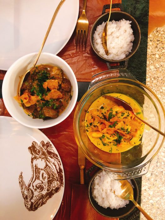 De seguida, continuamos por caminhos goeses e pedimos Vindalho é um prato da culinária indo-portuguesa de Goa, Damão e Diu. O nome resulta da contração da expressão vinha d’alhos, tempero levado pelos marinheiros portugueses, na época dos descobrimentos, e posteriormente adaptado ao gosto local, que o complementou com malaguetas e especiarias.