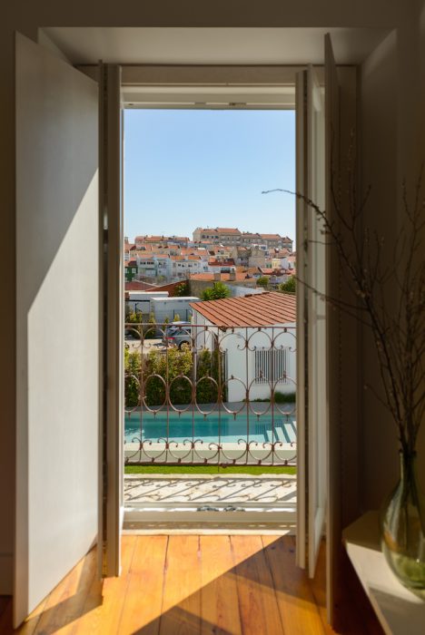 Pela manhã, o pequeno-almoço chega à porta dos apartamentos num saco de juta, para que cada um o prepare a gosto e se sinta verdadeiramente em casa, mas mimado como se estivesse num hotel. É esse o espírito. Pela tarde, o jardim, debruado com uma antiga vinha, e a piscina convidam a banhos de sol com aromas de laranja e tangerina. Um luxo, aqui no bairro. O chilrear dos pássaros até faz esquecer que estamos no coração da cidade, a dois passos do eléctrico 28, que a percorre, colina acima, colina abaixo, até à Estrela com tanta graciosidade que ninguém lhe resiste.