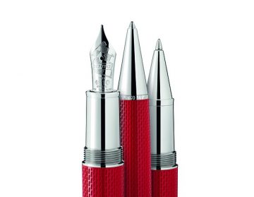 A resina preciosa vermelha da tampa e do corpo da Edição Especial James Dean ™ da Montblanc Great Characters lembra a cor vibrante do casaco vermelho de Dean usado no seu segundo filme, Rebel Without the Cause – uma das primeiras produções da Technicolor. O padrão evoca a estrutura dos jeans, uma peça frequentemente usada por James Dean nos seus filmes. Disponível como uma caneta de aparo, em rollerball e em esferográfica, a edição comemora o terceiro e último filme de James Dean com a forma do clipe revestido de rutênio como uma referência à arma que o seu personagem Jett Rink carregava nos ombros numa das cenas mais famosas. Uma incrustação na tampa é inspirada na forma de uma bala.
