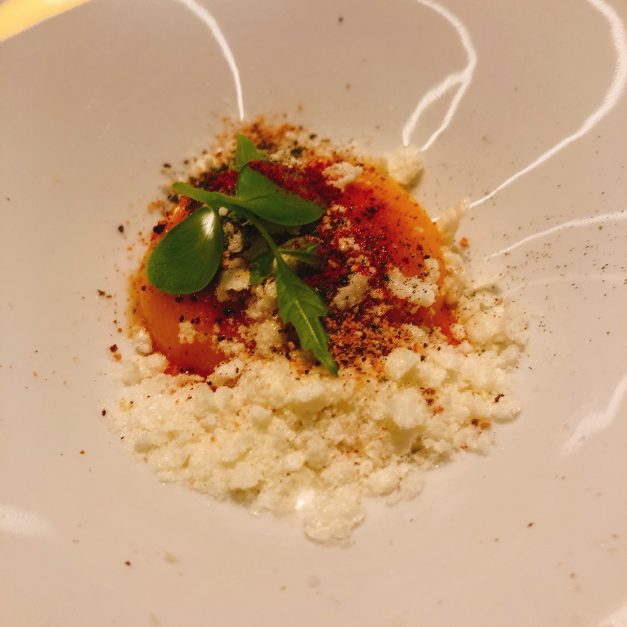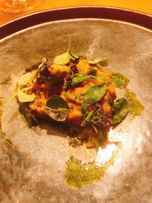 É assim que, de um menu que reúne muitas sinergias, se destacam o Ovo de tomatada – atenção, nem tudo é o que parece; os Raviolis com gamba-rosa do Algarve, algas de Ílhavo e dashi de enchidos fumados da Serra do Barroso. Há o peixe da nossa costa com Sucos de cebola fermentados e texturas de tubérculos, e sobremesas como a Laranja dos pobres, mel e azeite de Moura, inspirada na laranja alentejana comida por quem, noutros tempos, não tinha possibilidades para adquirir a laranja do Algarve, doce e sumarenta; e a Enxovalhada do Barreiro, já extinta, feita pelos Camarros do Barreiro no cais palafítico. O típico Pão-de-ló chega de forma pouco convencional, a provar que os rótulos não têm espaço à mesa.