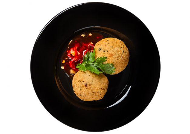 Petiscos – Salada japonesa de grelos; Chamuça de grão-de-bico; Escabeche de algas e abóbora assada; Bolinhos de bacalhau à tailandesa; Batatas fritas do Oriente.