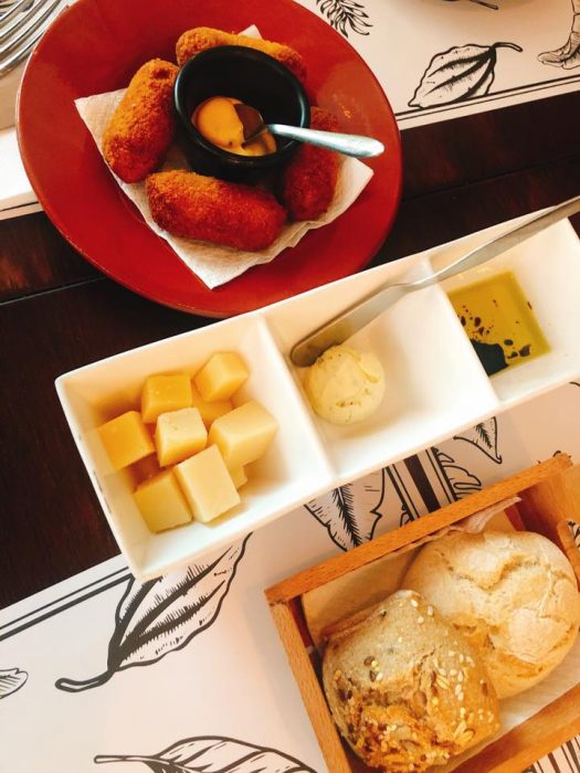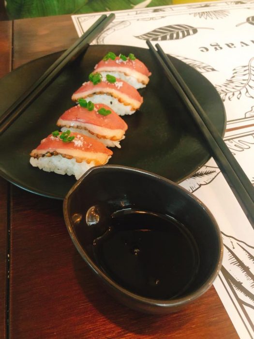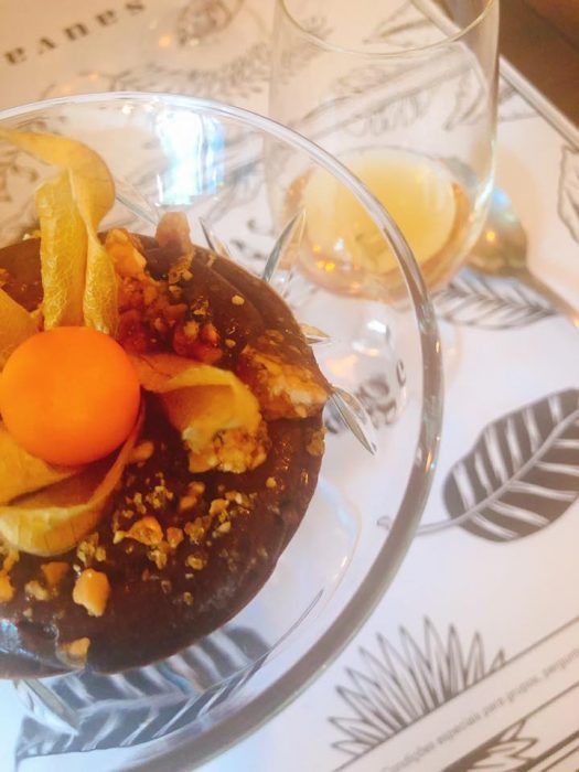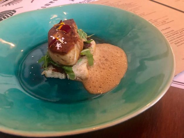 A refeição passou por uma viagem deslumbrante. Começou por uma Burrata óptima com doce de abóbora, depois, um Taco de porco, dois crocantes tacos recheados com carne de porco desfiada, alface romana e molho barbecue, seguindo pelo Nigiri de pato fumado, quatro unidades de nigiri de pato fumado com ervas secas e um doce molho teriyaki de laranja (um prato que não podem evitar e nem devem), passando pelo maravilhoso Foie Gras, acompanhado por um generoso pão de focaccia e coberto por uma espuma de café. Para finalizar a viagem tinha de ser um Lombo de bacalhau lascado, com ketsiap de tomate, cebolada, gelatina de salsa e umas deliciosas batatas à portuguesa. Claro, que o final doce foi uma reinvenção da Mousse de chocolate, com creme mascarpone e nougat de amendoim.