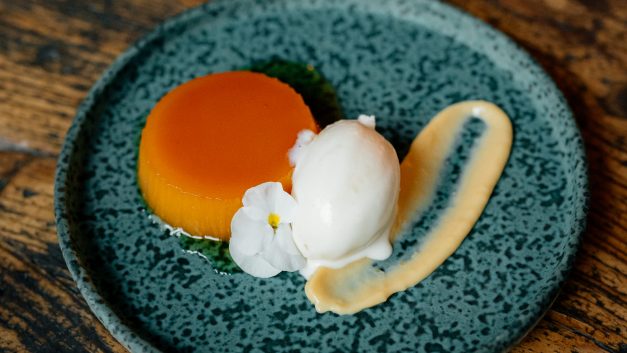 Por fim, a refeição termina com uma reinvenção do bastante português Pudim Abade de Priscos, que nesta versão selvagem é acompanhado por lemon curd e gelado de avelã.