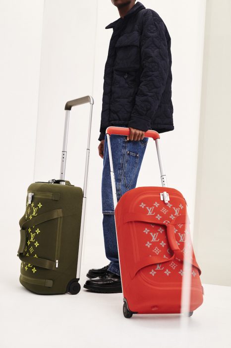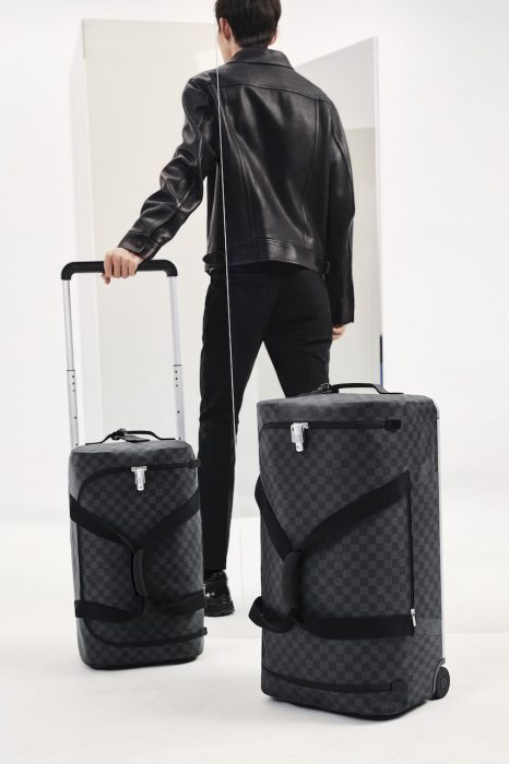 Esta inovadora estrutura externa é feita de uma malha com um padrão jacquard de dupla face com a interpretação original de Newton do padrão Monogram da Louis Vuitton que é tridimensionalmente moldada a quente.
