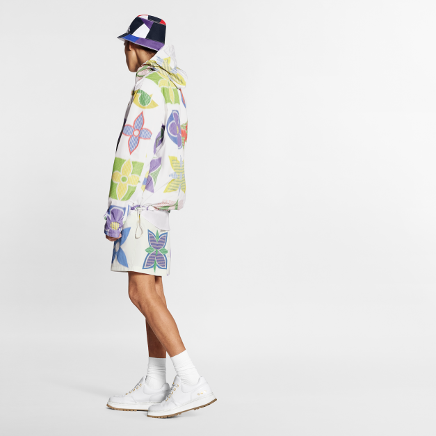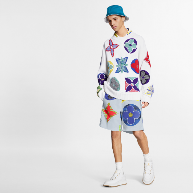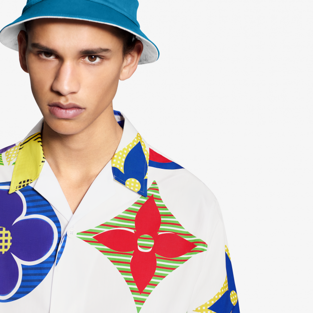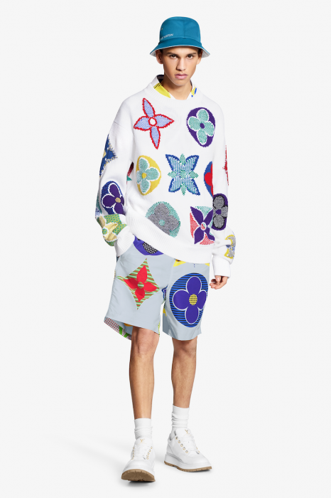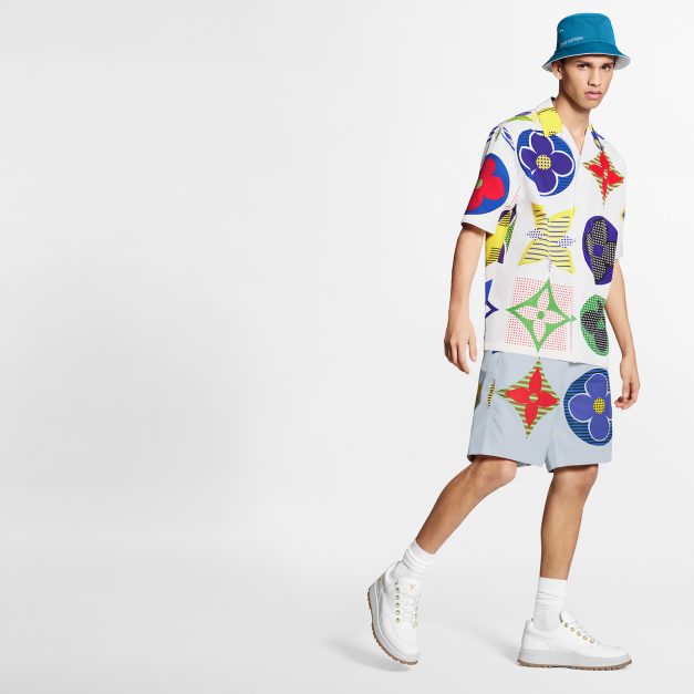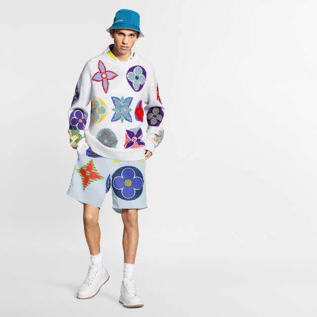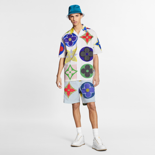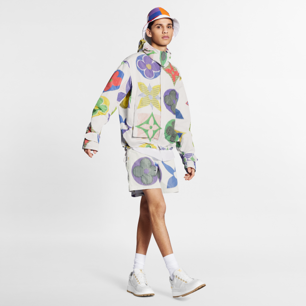 Os coloridos padrões da coleção lembram o movimento de arte moderna do início do século 20, com círculos, quadrados, retângulos e linhas a dançar ao longo das peças com tecidos leves e cortes práticos. As formas divertidas quebram o emblemático padrão Monogram da Louis Vuitton, agora apresentado com símbolos multi coloridos, oversized e ecléticos.