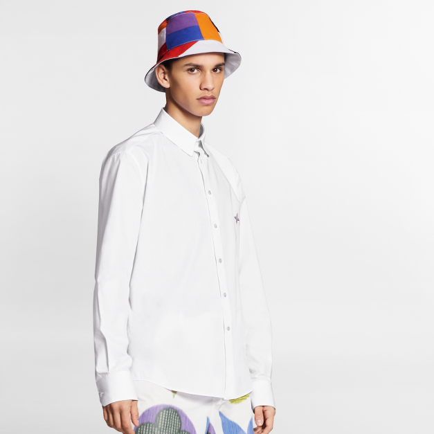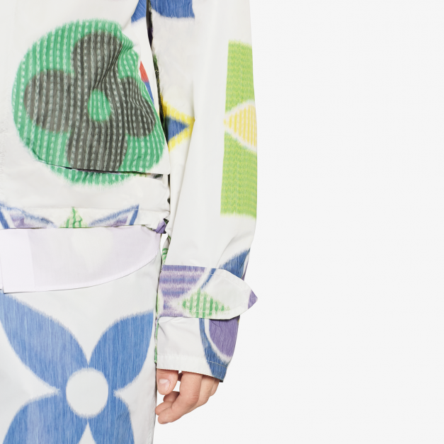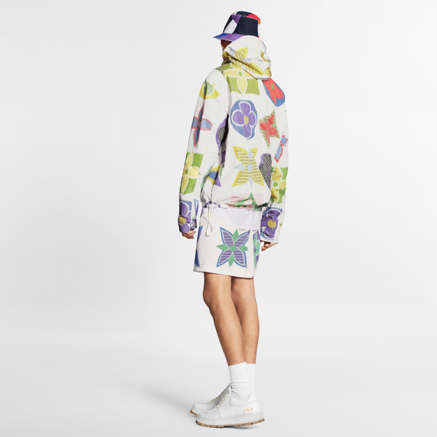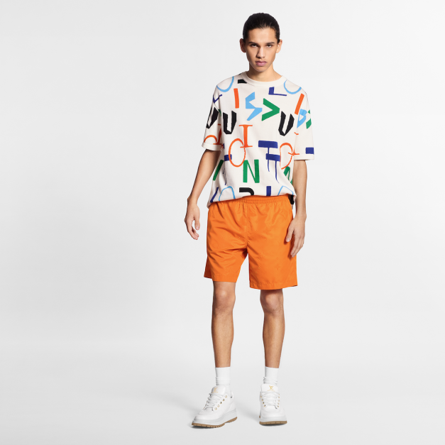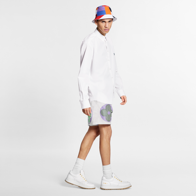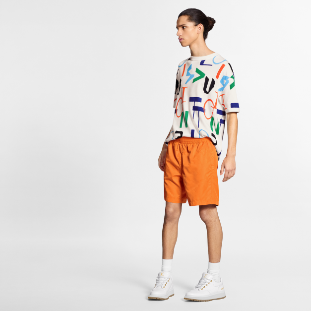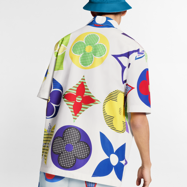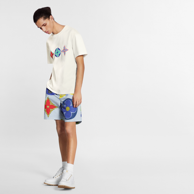 Os coloridos padrões da coleção lembram o movimento de arte moderna do início do século 20, com círculos, quadrados, retângulos e linhas a dançar ao longo das peças com tecidos leves e cortes práticos. As formas divertidas quebram o emblemático padrão Monogram da Louis Vuitton, agora apresentado com símbolos multi coloridos, oversized e ecléticos.