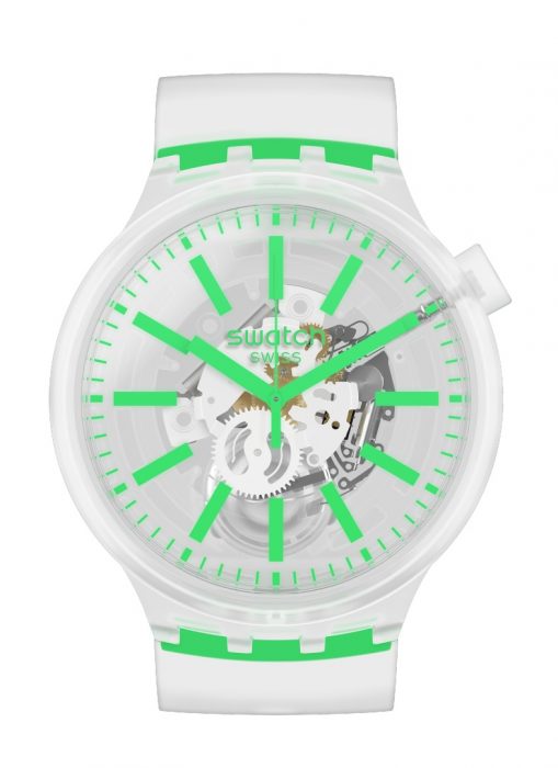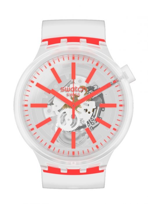 A diversão continua nos relógios. O modelo BIG BOLD JELLY continua a fazer divertir desde o começo deste ano. O último sucesso da coleção BIG BOLD da Swatch, lançado em janeiro de 2020, distingue-se pelas suas braceletes semitransparentes e uma caixa completamente transparente que exibe o seu coração tecnológico.