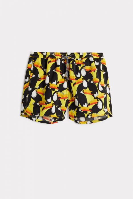 A nova coleção de swimwear da Intimissimi Uomo é inspirada em Africa e nos Trópicos. Os macro padrões com animais da savana, plantas e frutas tropicais, acompanham a nova tendência, as cores néon. Esta estreia na linha de homem, é perfeita para quem gosta de dar um toque de cor aos seus looks de verão, realçando assim o seu bronzeado.