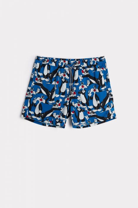 O clássico ícone pop é a estrela desta coleção cápsula de calções de banho, confortáveis e versáteis que certamente iluminarão os nossos dias de verão.